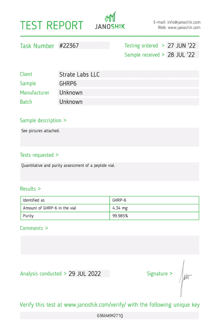 Research involving GHRP-6 focuses on its potential to stimulate pulsatile GH secretion, modulate metabolic responses, and influence cellular growth factors in controlled models. This compound is intended strictly for laboratory research and is not approved for human or veterinary use.